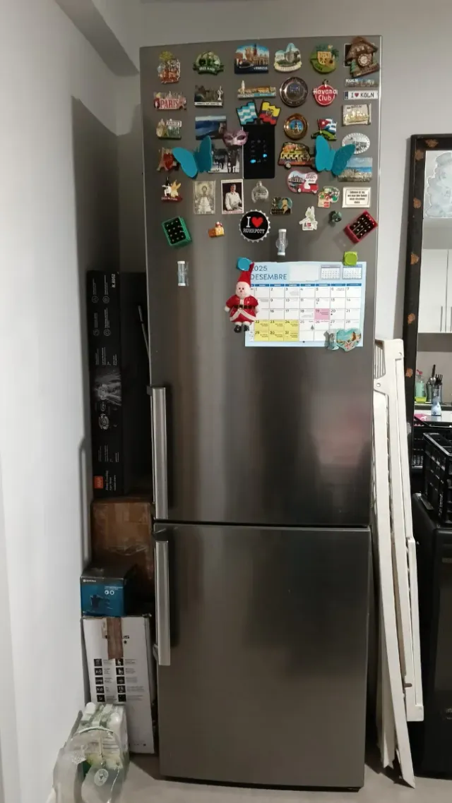 Nevera plateada de acero inoxidable. - Diseño moderno y elegante. - Amplio espacio de almacenamiento. Precio negociable