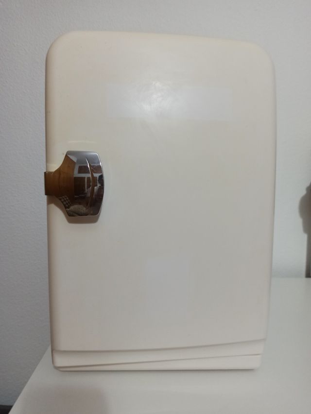 Nevera portátil de color blanco con un diseño retro y un asa - Acabado liso.