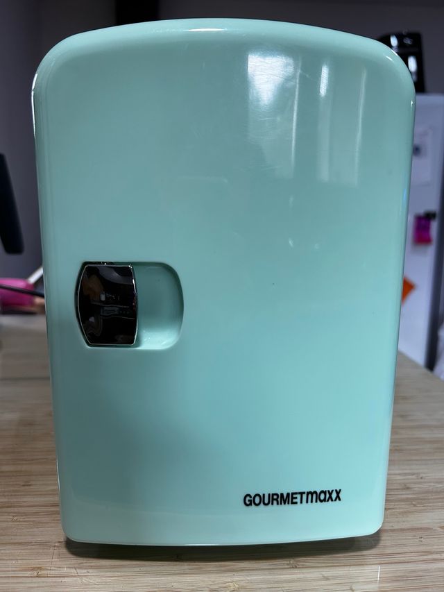 Detalles del productoNevera portátil de la marca Gourmetmaxx con un diseño vintage. Sirve para 12V (coche, furgoneta, autocaravana) y 220V (normal).