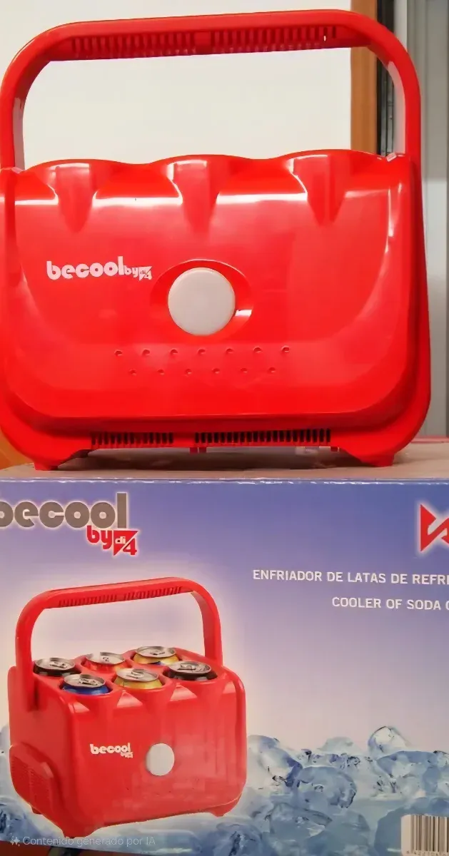 Nevera portátil de la marca becool by 4. - Color rojo. - Asa para transporte. - Diseño compacto.