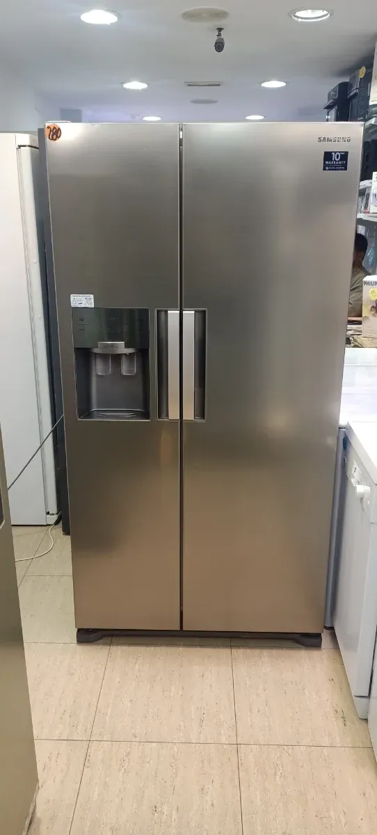 Nevera americana de acero inoxidable de la marca Samsung. Diseño moderno y elegante.