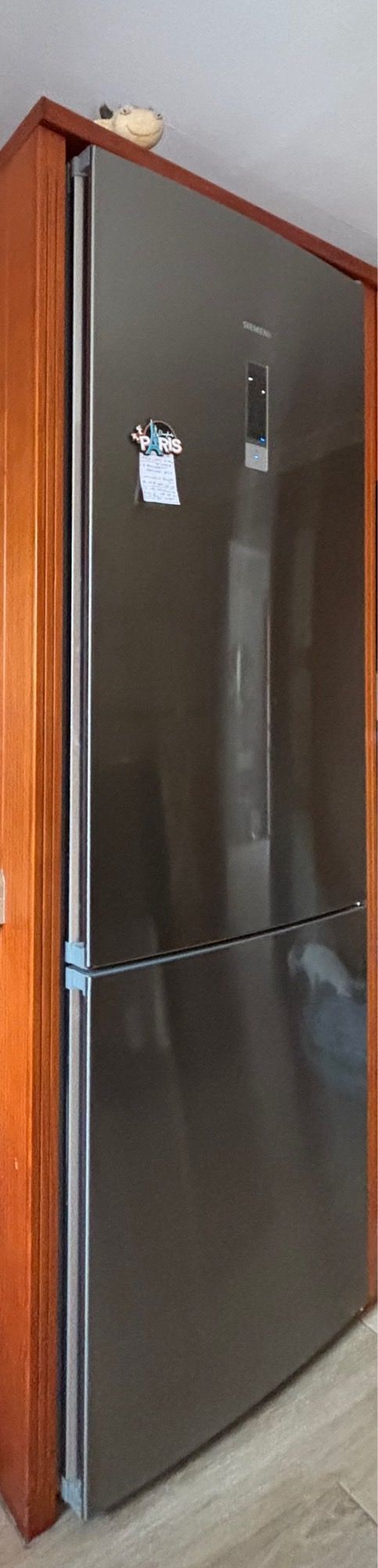 Detalles del productoNevera Siemens de color gris oscuro.