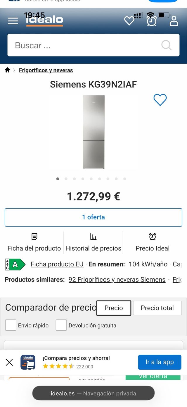 Detalles del productoNevera Siemens de 2 metros de alto y 60 cm de ancho, con tecnología No Frost. El electrodoméstico está nuevo solo pequeña tara en puerta .