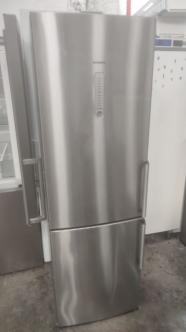 Detalles del productoRefrigeradora Siemens de acero inoxidable en Es un electrodoméstico de dos puertas, con congelador inferior.