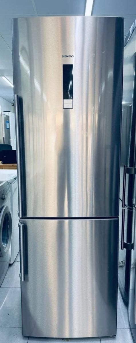 Detalles del productoNevera de la marca Siemens con acabado en acero inoxidable.