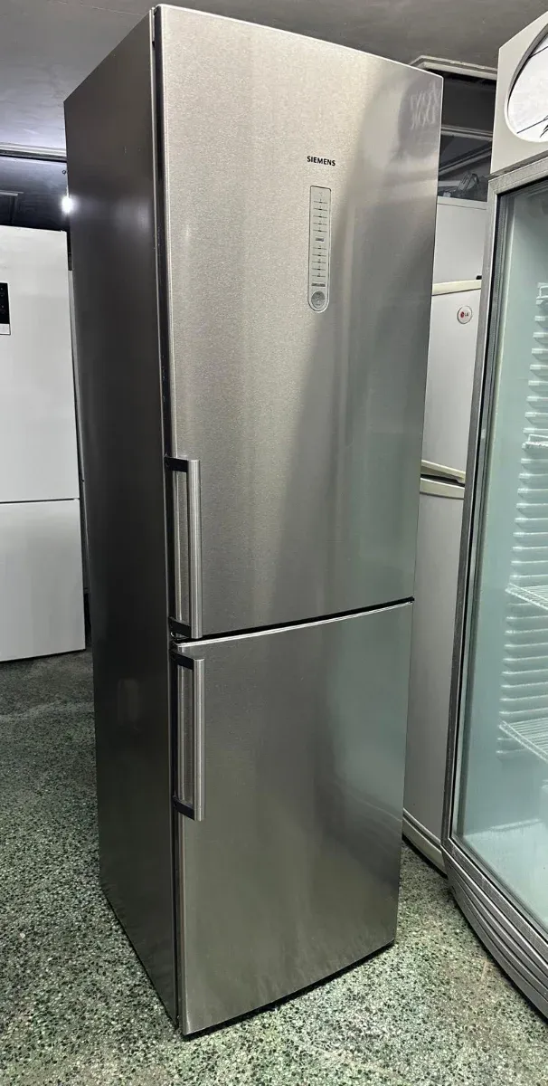 Detalles del productoNevera Siemens de acero inoxidable con diseño moderno.