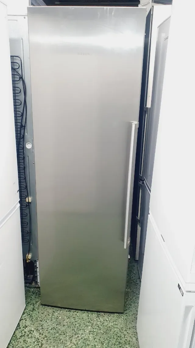 Detalles del productoNevera marca Siemens con tecnología No Frost. Sus dimensiones son 185 cm de alto por 60 cm de ancho y cuenta con una eficiencia energética de clase A++.