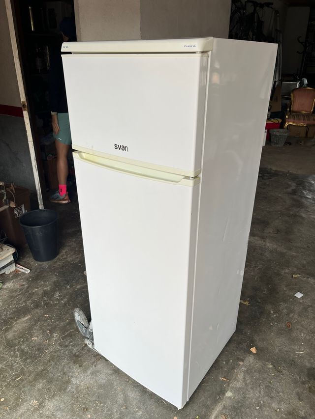 Nevera de dos puertas Svan en color blanco. - Diseño clásico y funcional. - Medidas: 144x55x55