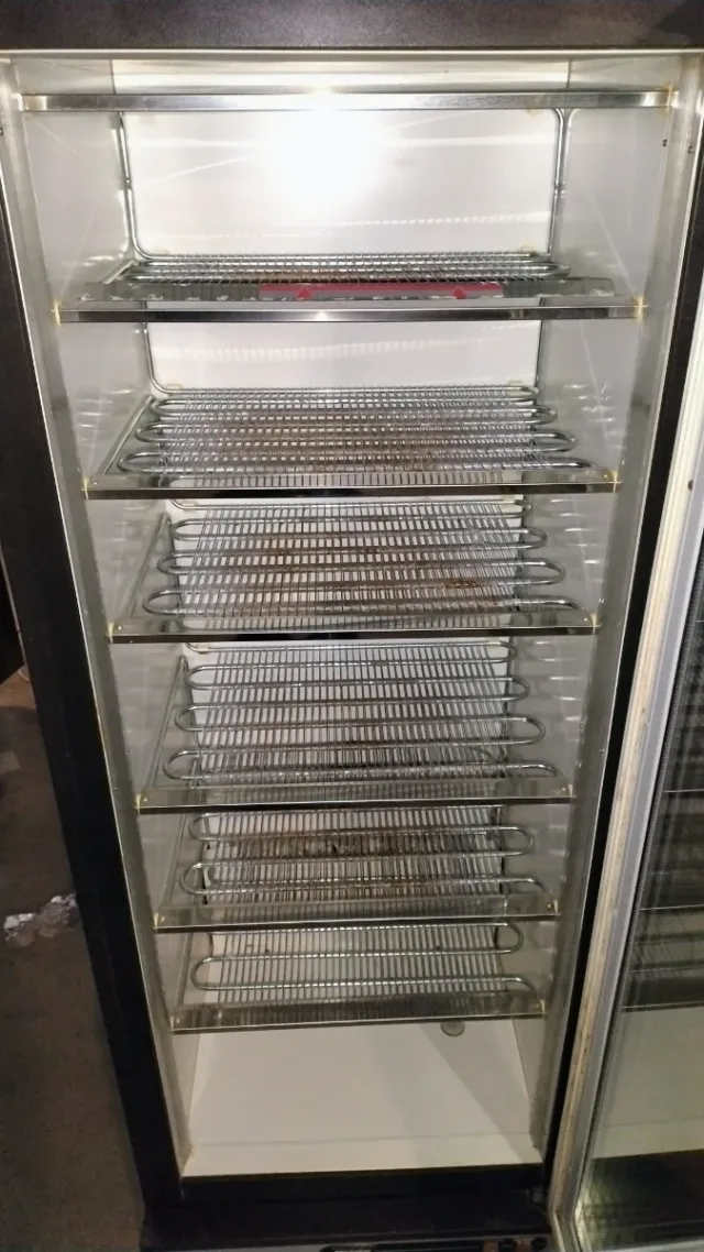 Nevera vertical con puerta de cristal. - Estantes metálicos. - Diseño moderno.