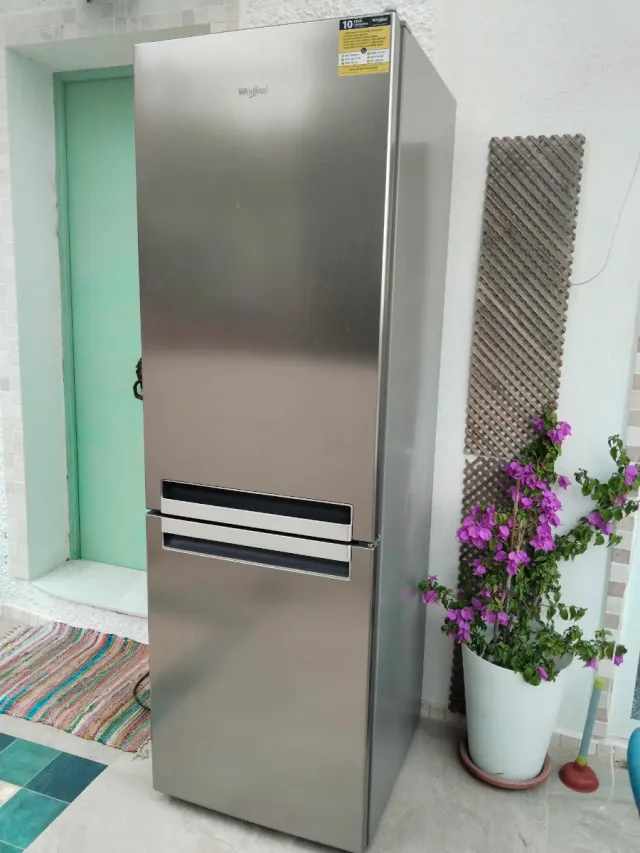 Detalles del productoNevera Whirlpool con 3 cajones en congelador inferior. Un o de ellos está un poco roto el frente pero es solo estético. Medidas del producto