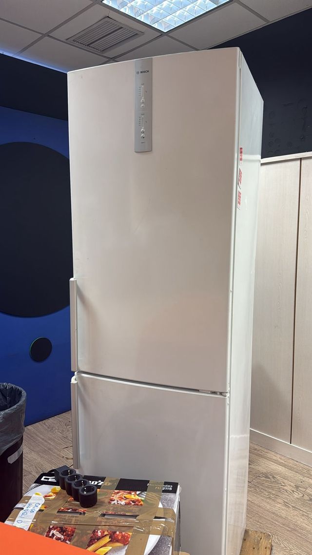 Detalles del productoNevera de la marca Bosch en color blanco. Cuenta con un diseño moderno y funcional.