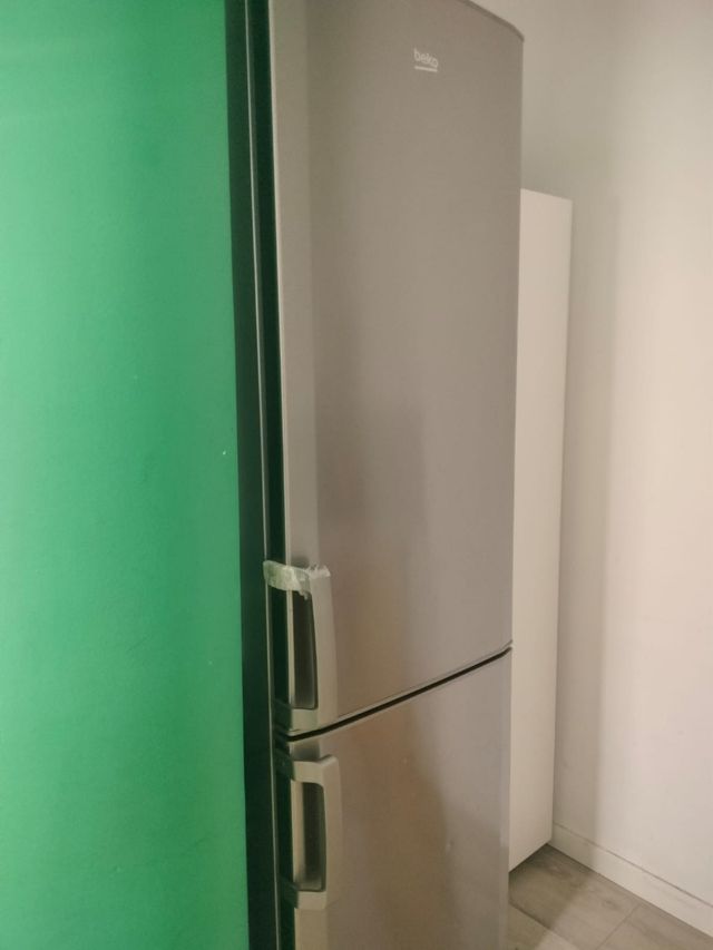 Nevera y congelador de la marca Beko. - Color plateado. - Diseño moderno.