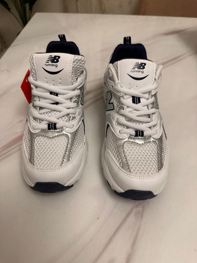 Sin estrenar · 37 · New Balance · Plateado y Blanco