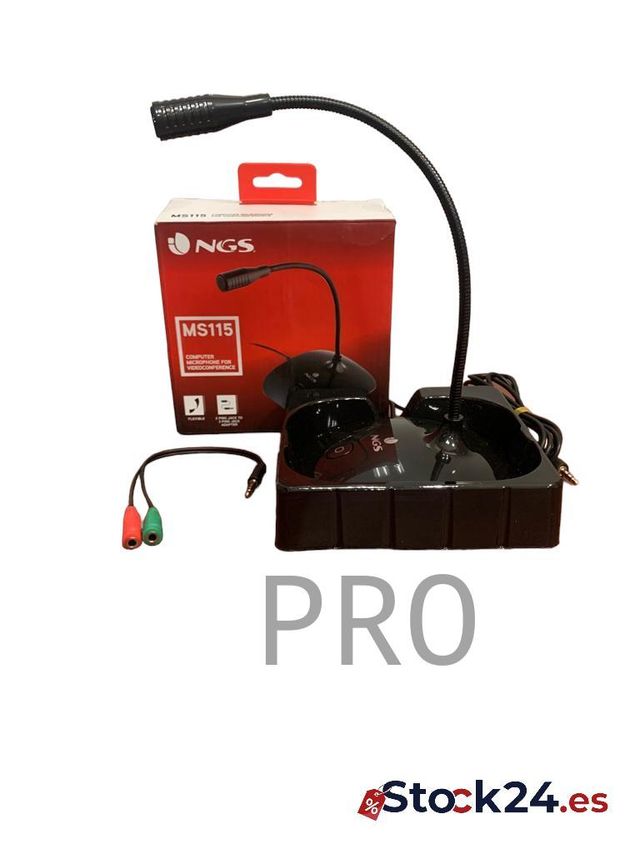 Detalles del productoEste práctico micrófono omnidireccional está formado por un cuello de cisne flexible metálico y una peana con protección antideslizante para una mayor estabilidad. Microfono de escritorio que filtra el ruido de fondo no deseado y ofrece una claridad de sonido excepcional para juegos y videoconferencias. Conexión Jack 3.5 mm ideal para el uso en portátil, adaptador de jack hembra a doble jack macho para su uso en PC y cable de 1,5 metros para facilitarte los movimientos. Botón MUTE incorporado en la base: apaga y enciende el micrófono cuando sea necesario. Sensibilidad -58d8 ±2dB, impedancia 2.2kO, respuesta de frecuencia 100Hz...