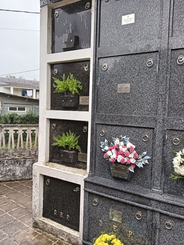 - Compartimento adicional para cenicero. Es el que tiene el mármol más oscuro y el que hace esquina, entrando en el cementerio , cementerio de santa juliana de verines