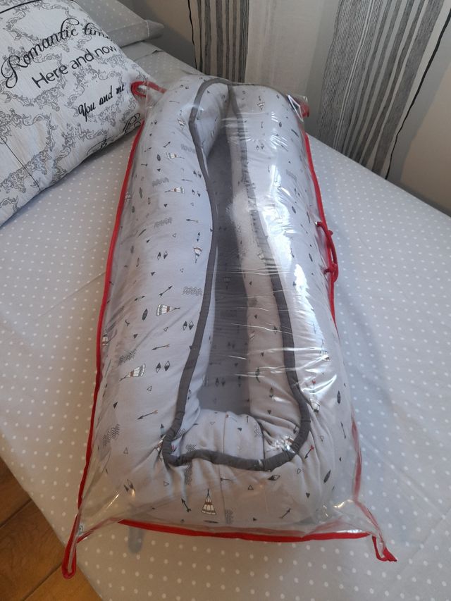 Detalles del productoNido bebe, utilizado únicamente en los primeros meses, acolchado, mimoso, calentito. Tiene un espacio con velcro en la base externa inferior . Medidas del producto