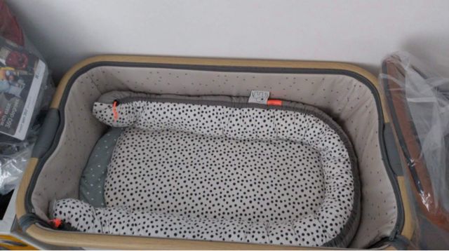 Nido para bebé de la marca Done by Dear, con un diseño de lunares en blanco y negro. - Funda con estampado de lunares. - Borde acolchado. - Incluye etiqueta de la marca.