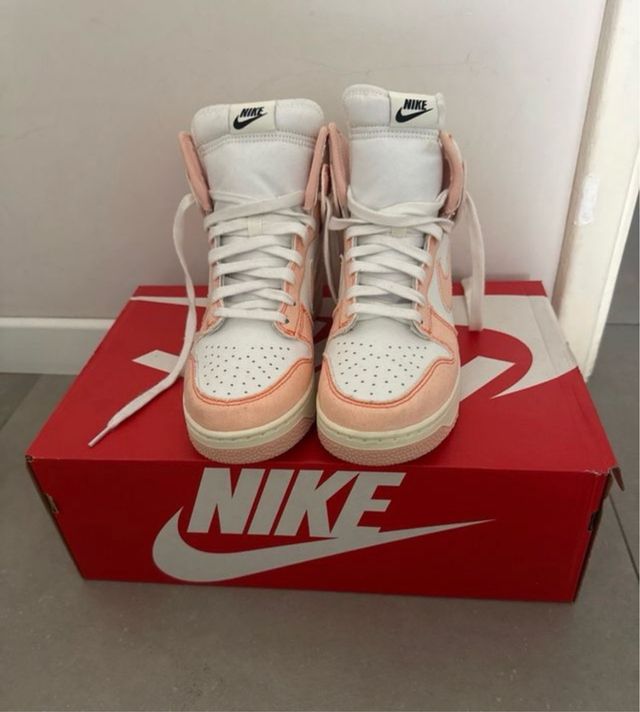 Bambas altas Nike Dunk Hi. Nuevas. En la etiqueta pone 41, pero corresponde a un 40 de España... yo tengo un 41 y me van muy justas!!
