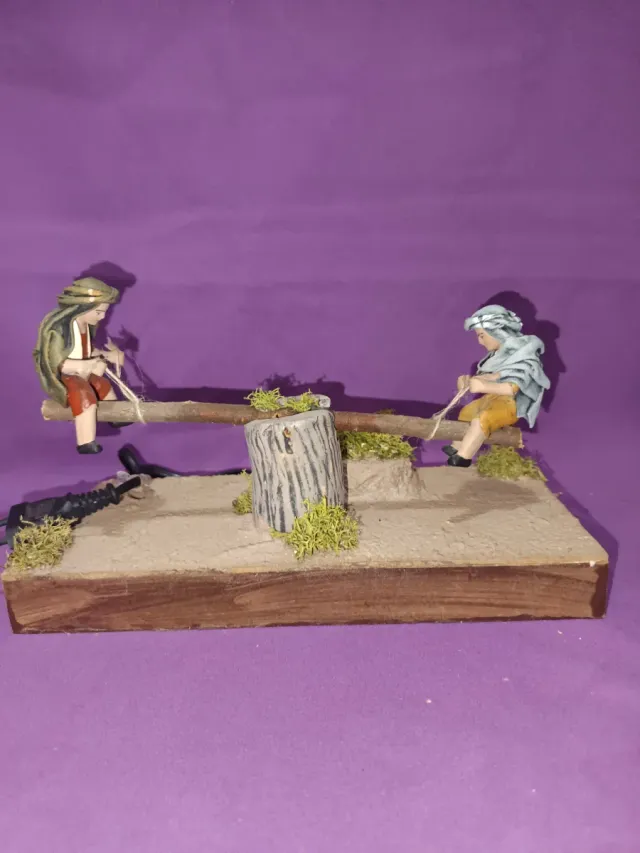 Detalles del productoFigura decorativa de niños jugando en un balancín.