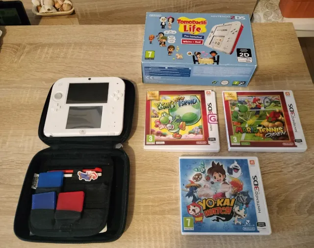 Nintendo 2DS Blanca y Roja con Caja y 3 Juegos
