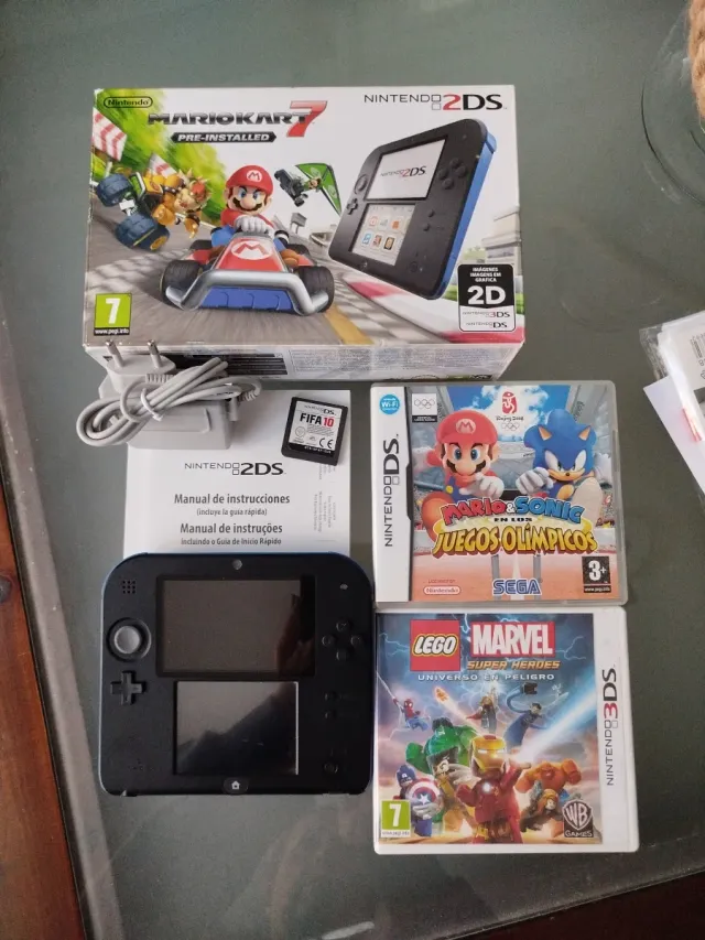 Nintendo 2DS Negra con Mario Kart 7 y juegos
