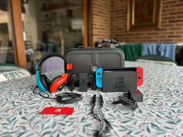 - Incluye consola, Joy-Cons, base de carga (dock), auriculares,funda de transporte, straps de Joycons y todos los cables.