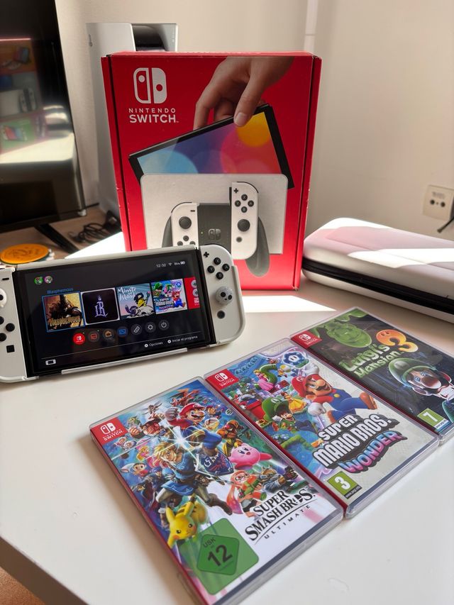 consola Nintendo Switch OLED blanca cómo nueva.
