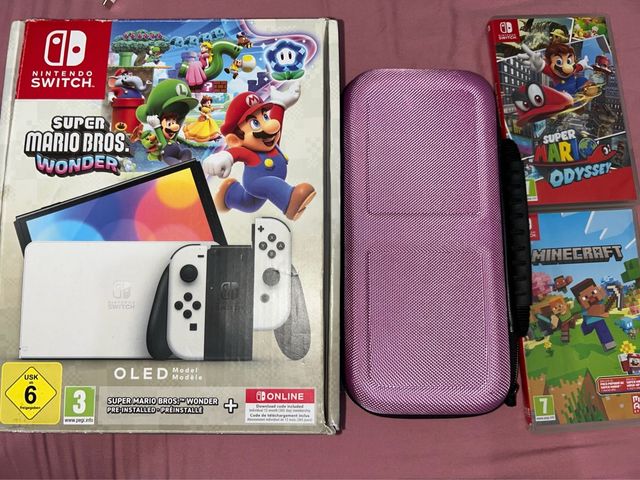 Nintendo Switch OLED Blanca + Estuche + 2 Juegos