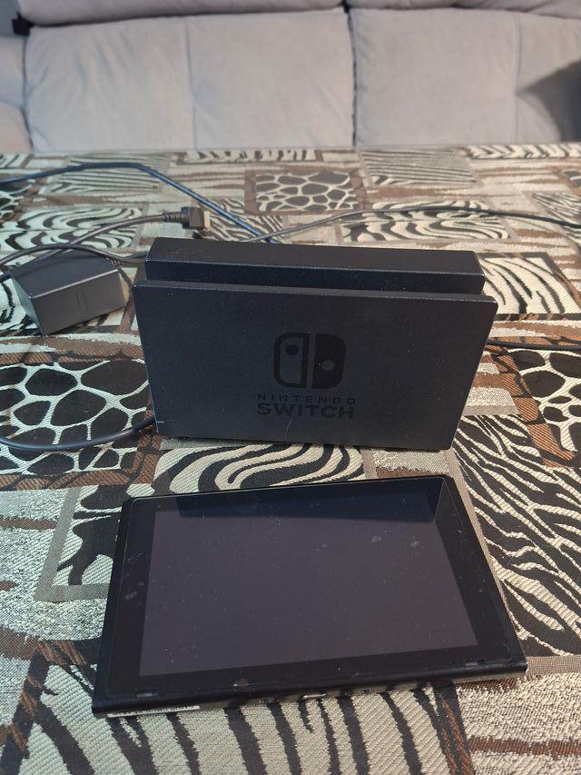 - Nintendo switch - Soporte Tv - Dos mandos inalambricos compatibles -Incluye joy-con rojo y azul,el azul tiene un botón averiado -Cargador -Funda de Mario