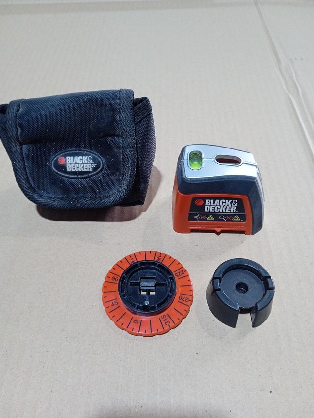 Detalles del productoNivel láser Black & Decker en buen estado. Incluye estuche, base giratoria y adaptador. - Ideal para trabajos de bricolaje y construcción. - Fácil de usar y transportar. - Perfecto para nivelar superficies. - Se incluye todo lo que se ve en las fotos.