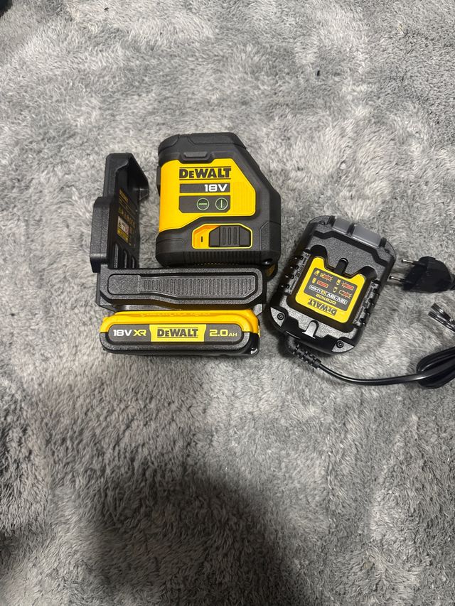 Detalles del productoNivel láser Dewalt de 18V con dos líneas cruzadas. Incluye baterías y cargador.