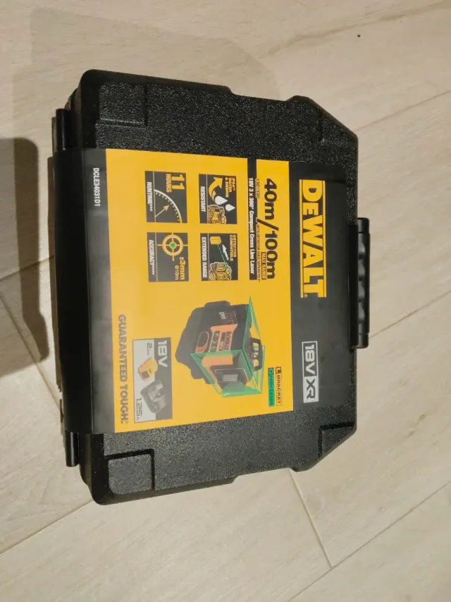Incluye: 2 baterías 18v 2 amperios, cargador, tarjeta objetivo verde, soporte de sujeción imantado y maletín de transporte.