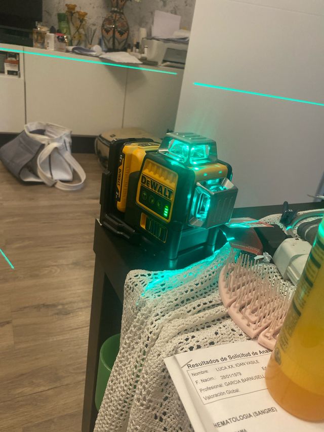 Nivel láser de la marca DeWalt con líneas verdes. - Incluye batería DeWalt.