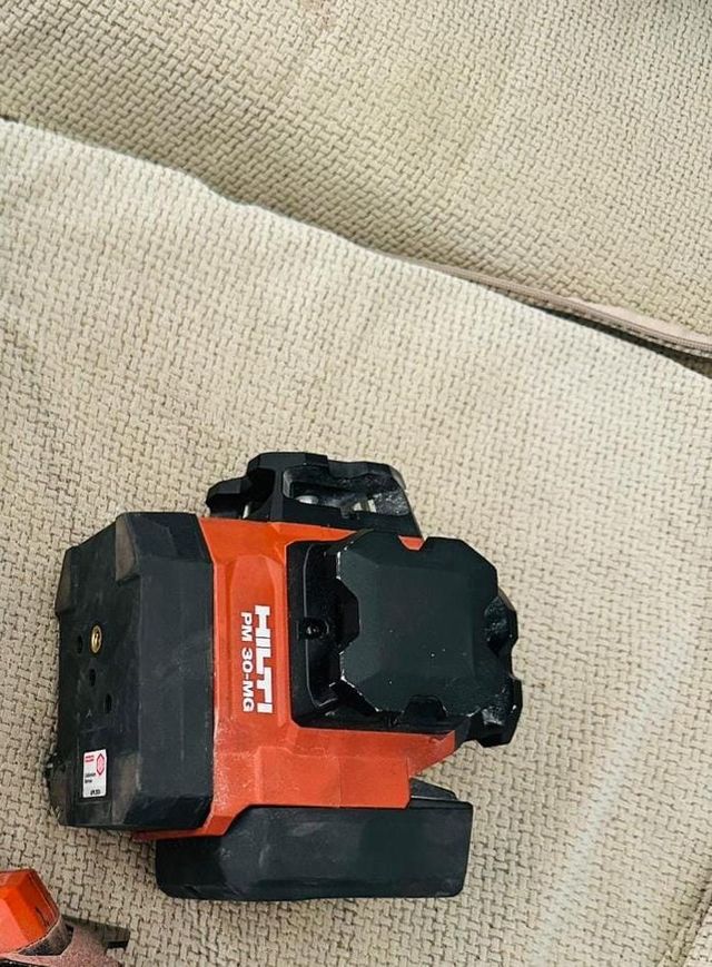 Nivel láser Hilti modelo PM 30-MG. - Color rojo y negro. - Diseño compacto y robusto.