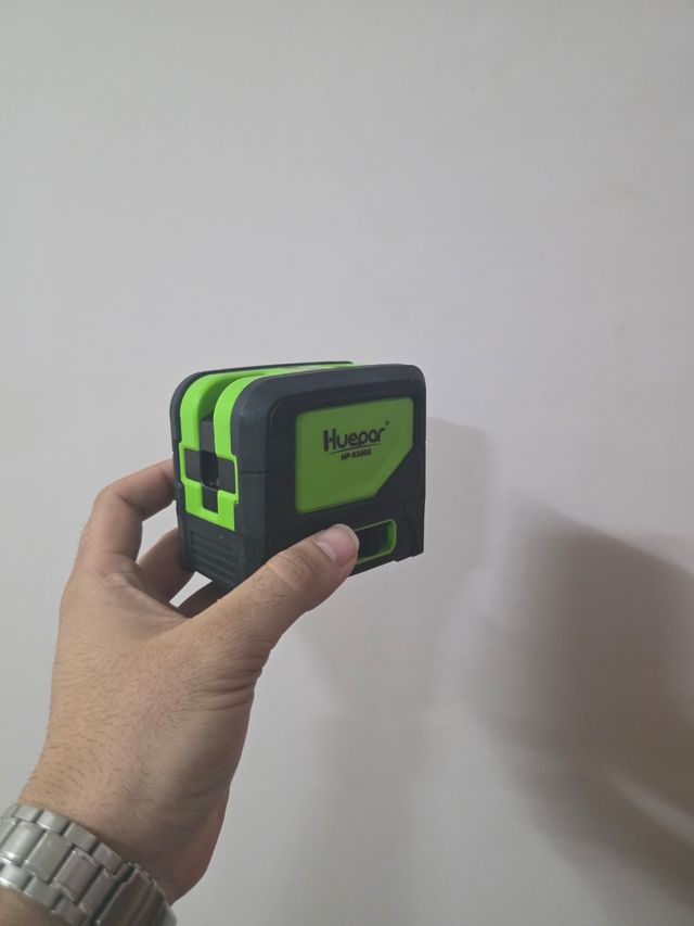 Nivel láser de la marca Huepar, modelo HP8300G. - Diseño compacto y robusto. - Carcasa en color verde y negro.