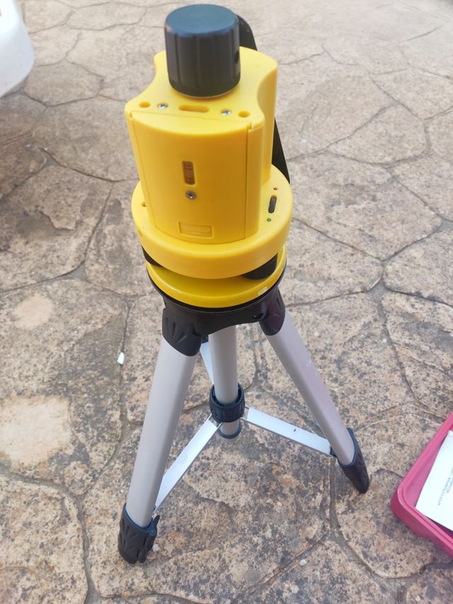 Nivel láser rotativo con trípode, en perfecto estado. Incluye: - Nivel láser. - Trípode de aluminio. - Cargador.Usa pilas recargables No incluidas