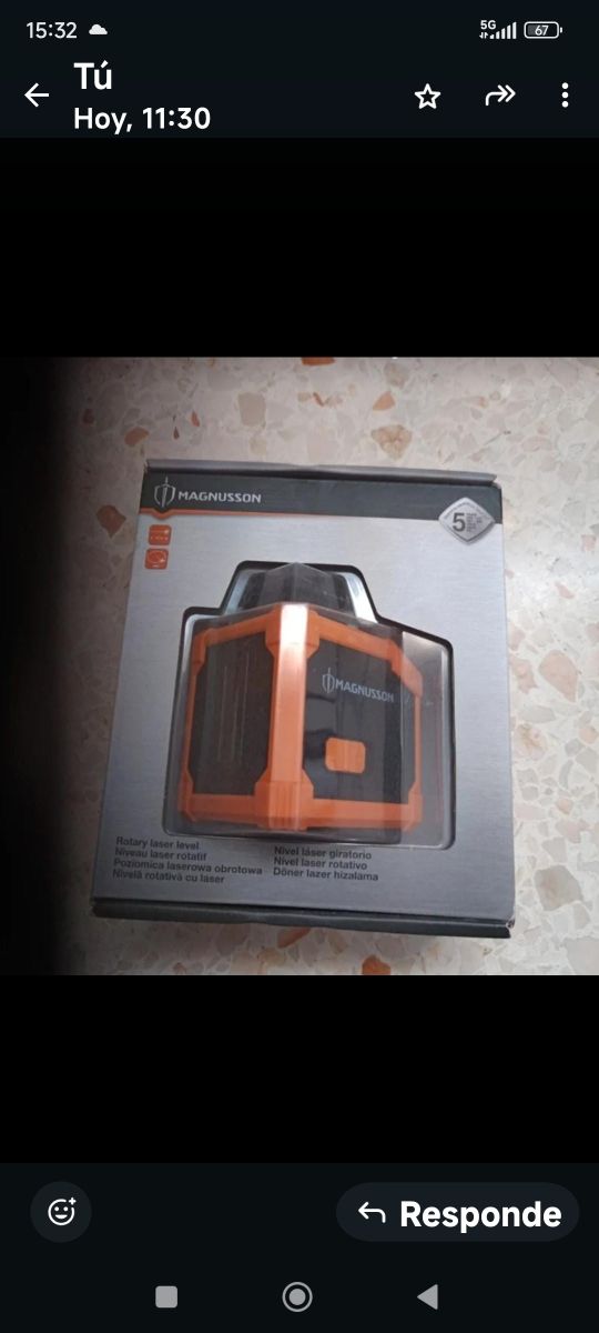 Nivel láser rotatorio de la marca Magnusson, en perfecto estado. Es un nivel láser giratorio, ideal para trabajos de bricolaje y construcción.