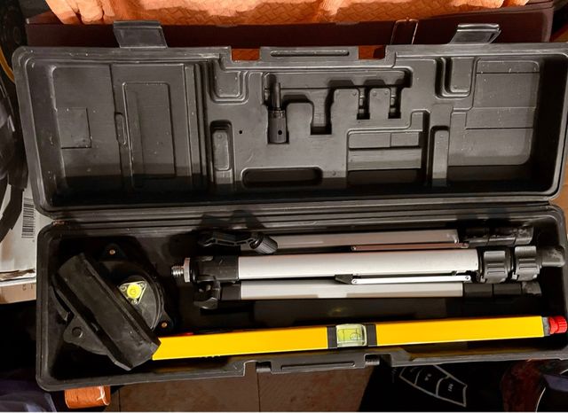 Detalles del productoNivel láser rotatorio Silverline en perfecto estado, listo para usar. Incluye un trípode de aluminio.