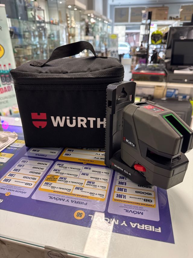 Nivel láser de la marca Würth, modelo CLG18. Incluye su bolsa de transporte. - Bolsa de transporte negra con logo de Würth. -Bateria -Cargador -Portapilas