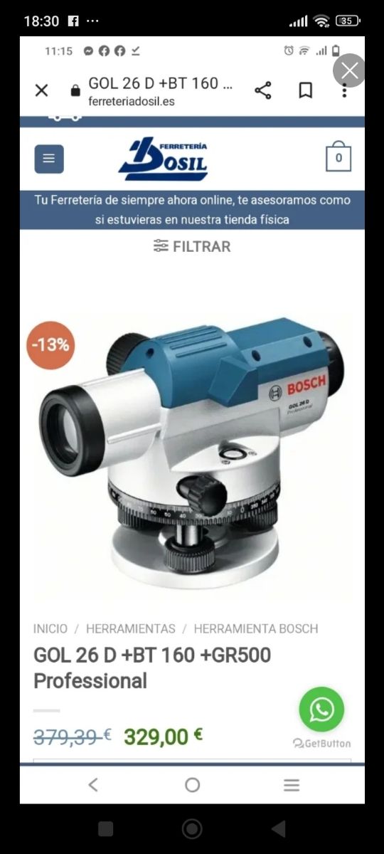 Vendo nivel láser Bosch GOL 26 D en buen estado.Nuevo. Incluye trípode BT 160 y GR500. - Nivel láser Bosch GOL 26 D. - GR500.