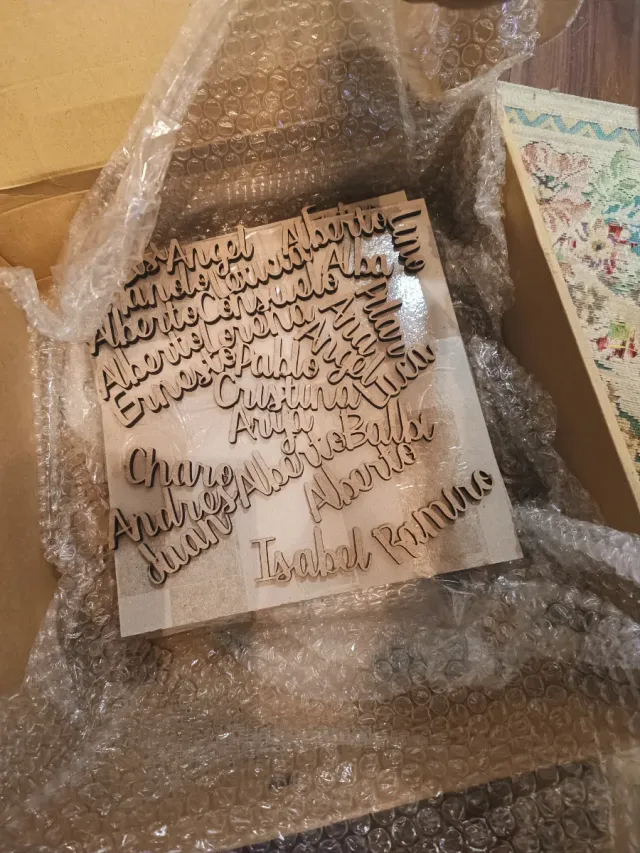 Detalles del productoConjunto de nombres de madera cortados con láser, ideales para decoración o manualidades.