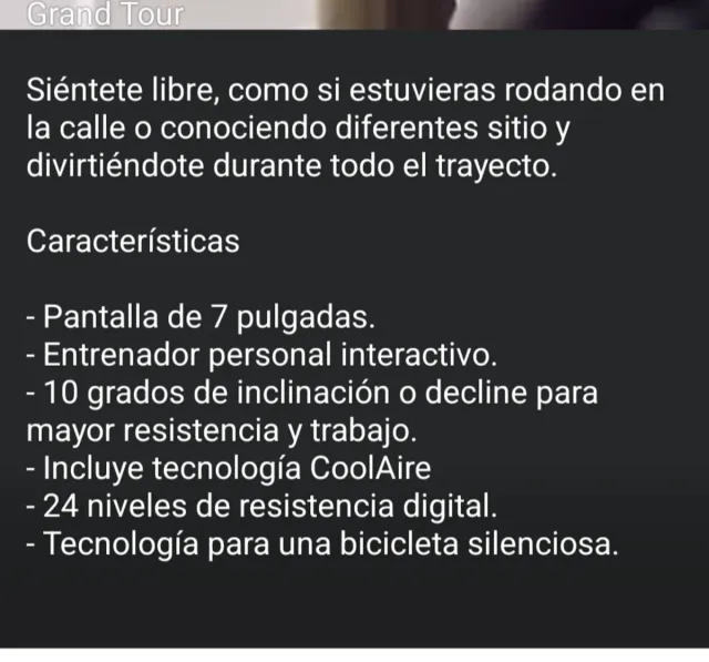 Detalles del productoBicicleta estática NordicTrack Grand Tour, ideal para entrenar en casa. Disfruta de tus recorridos virtuales.