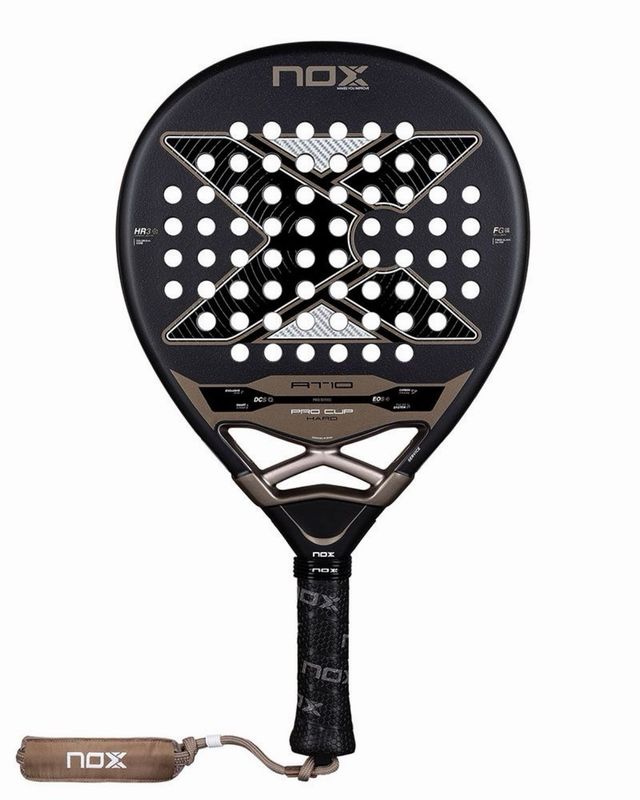 Pala de pádel Nox AT Pro Cup Hard. - Diseño en color negro y detalles en dorado. - Forma de lágrima. - Acabado mate.