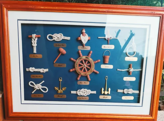 Marco decorativo con una colección de nudos marinos y elementos náuticos.