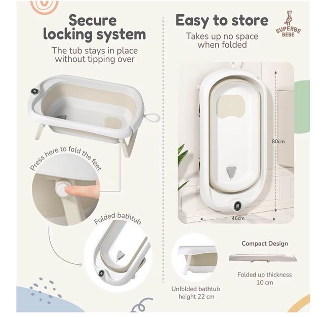 Detalles del productoBañera plegable para bebés, diseñada para facilitar el baño y el almacenamiento.