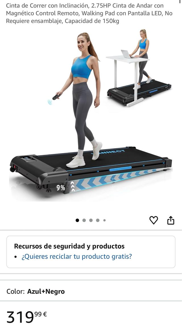 Cinta de correr con inclinación y control remoto. Perfecta para entrenar en casa.