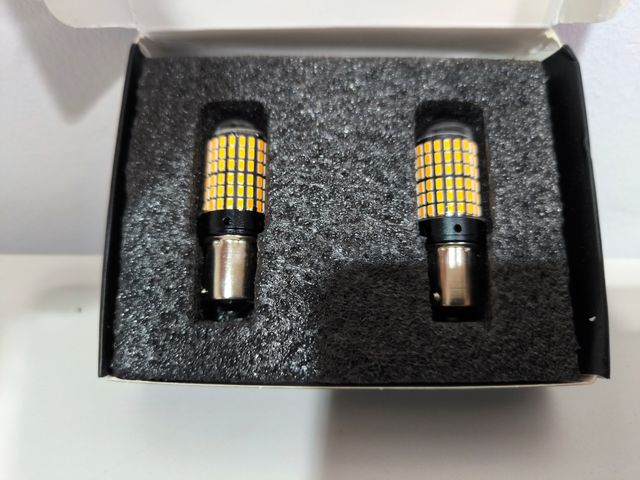 2 Bombillas LED naranjas doble polo BA15S. Válidas para coche/moto. - Mirar bien el tipo de casquillo. *****2 Juegos disponibles*****