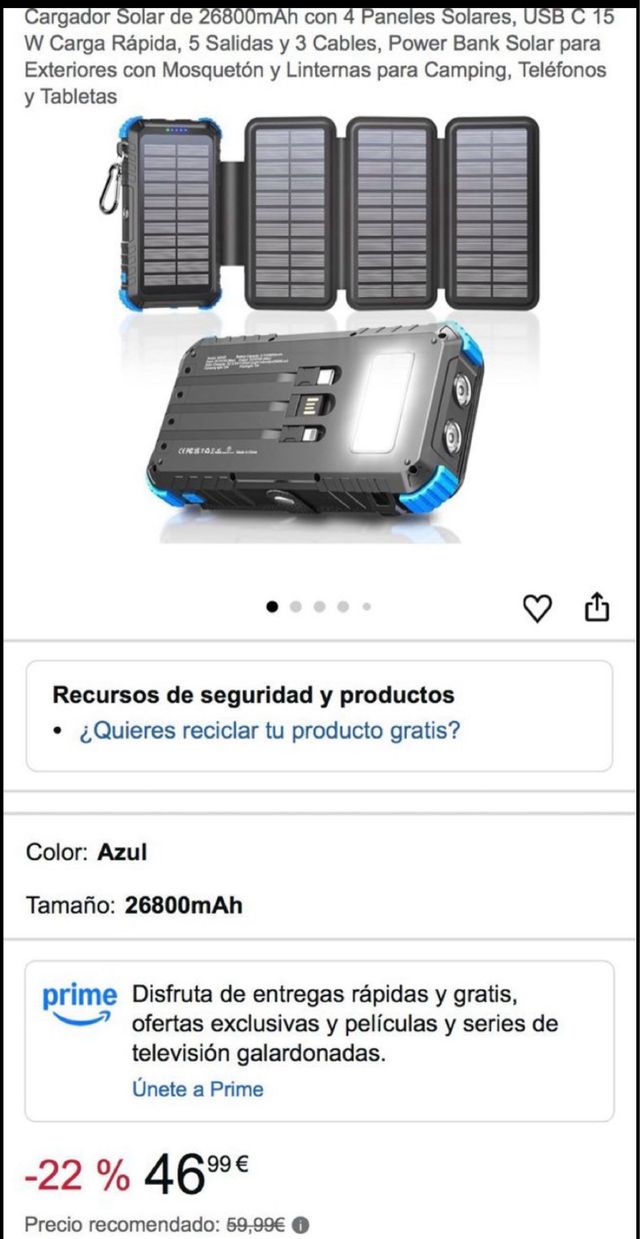 - Ideal para exteriores, camping, teléfonos y tabletas.