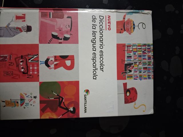 Diccionario escolar de lengua española en buen estado totalmente forrado algunos daños exteriores que no afecta a su uso.