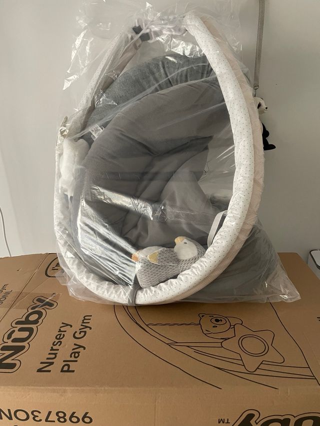 Detalles del productoGimnasio para bebé de la marca Nuby, ideal para el entretenimiento y desarrollo del pequeño. El gimnasio está diseñado con colores neutros y texturas agradables.